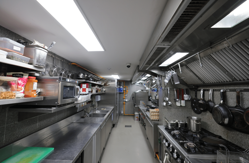 De keuken wordt schoon, fris en representatief opgeleverd, klaar voor veilig gebruik en inspecties.